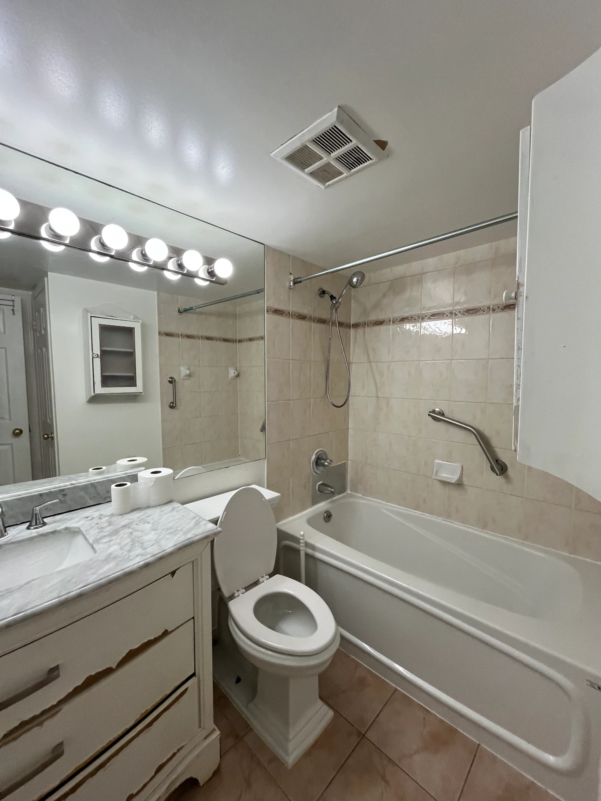 Bathroom: Updated tiling, fixtures, and finishes to create a fresh, clean look.